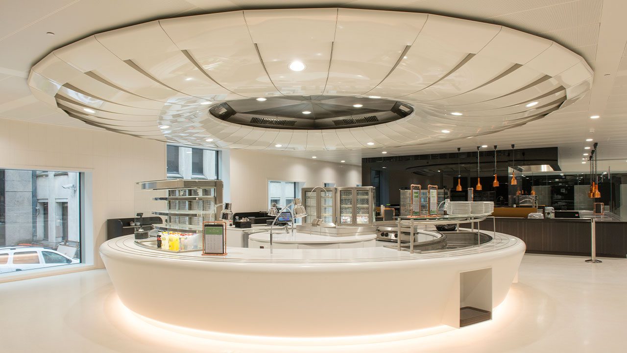 La aplicación en restaurantes le permite un excelente contacto con el cliente, fácil mantenimiento y aspecto impecable.